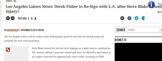 Beijing time on September 26 news, because backup point guard Steve Blake accidental injury, and the Los Angeles lakers in the backcourt appeared quota vacancy, beauty media exposure material said the lakers is likely to take this chance to sign back Derek fisher.